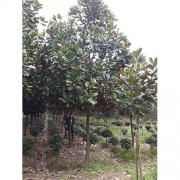 荷花玉兰(学名:Magnolia grandiflora L):常绿乔木,在原产地高达30米;树皮淡褐色或灰色,薄鳞片状开裂;小枝粗壮。叶厚革质,椭圆形,长圆状椭圆形或倒卵状椭圆形,叶面深绿色,有光泽。花白色,有芳香,直径15-20厘米;花被片9-12,厚肉质,倒卵形,长6-10厘米,宽5-7厘米。聚合果圆柱状长圆形或卵圆形,蓇葖背裂,背面圆,顶端外侧具长喙;种子近卵圆形或卵形,长约14毫米,径约6毫米,外种皮红色,除去外种皮的种子,顶端延长成短颈。花期5-6月,果期9-10月。
