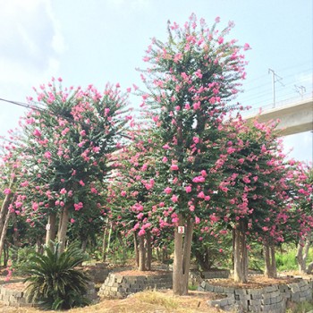 紫薇古桩可以制作大型桩景,是盆景爱好者和园林美化的佳品。紫薇古桩干光滑,多树瘤、空洞,外形古朴苍劲。枯木之上依然绿叶鲜嫩繁花似锦,有很高的观赏价值。