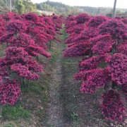 造型红花檵木多为自然式形态,球形形态,造型桩景形态。自然形态及球形形态测量自然高度,自然冠幅、造型桩景形态则需满足造型托叶丰满有层次感、质朴古拙,多杆测量则依次相加各主杆之和。湖南红成苗木基地位于—浏阳柏加镇,是长沙、株洲、浏阳三市交界点,地理位置优越,交通方便 特价绿化工程苗木