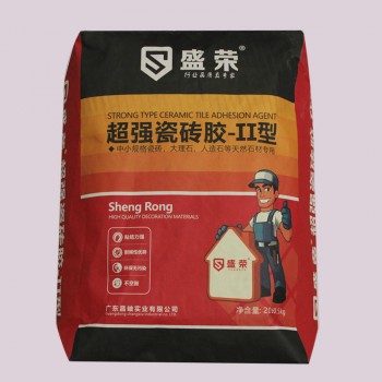 产品名称:盛荣超强型瓷砖胶 。型号:II型。净重:20kg。特性:粘结力超强、薄贴省空间、优异保水性能、低压索